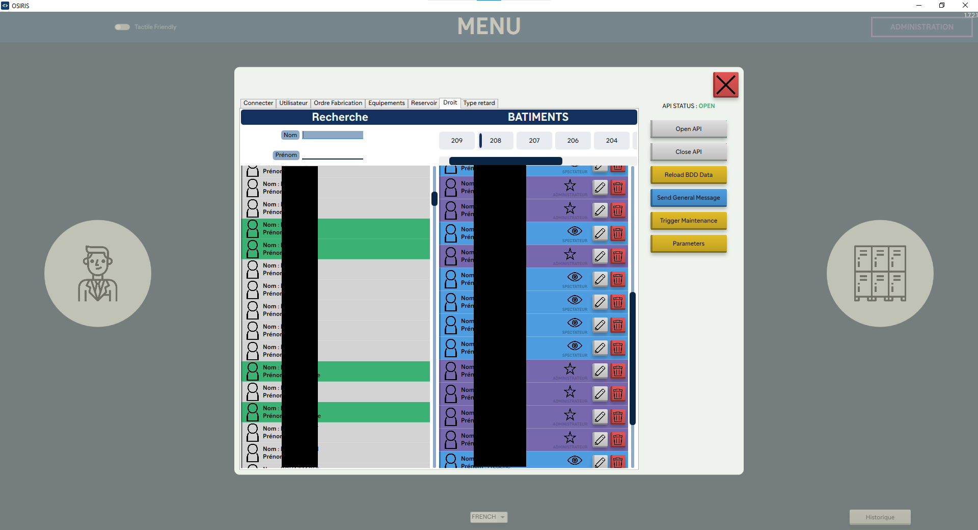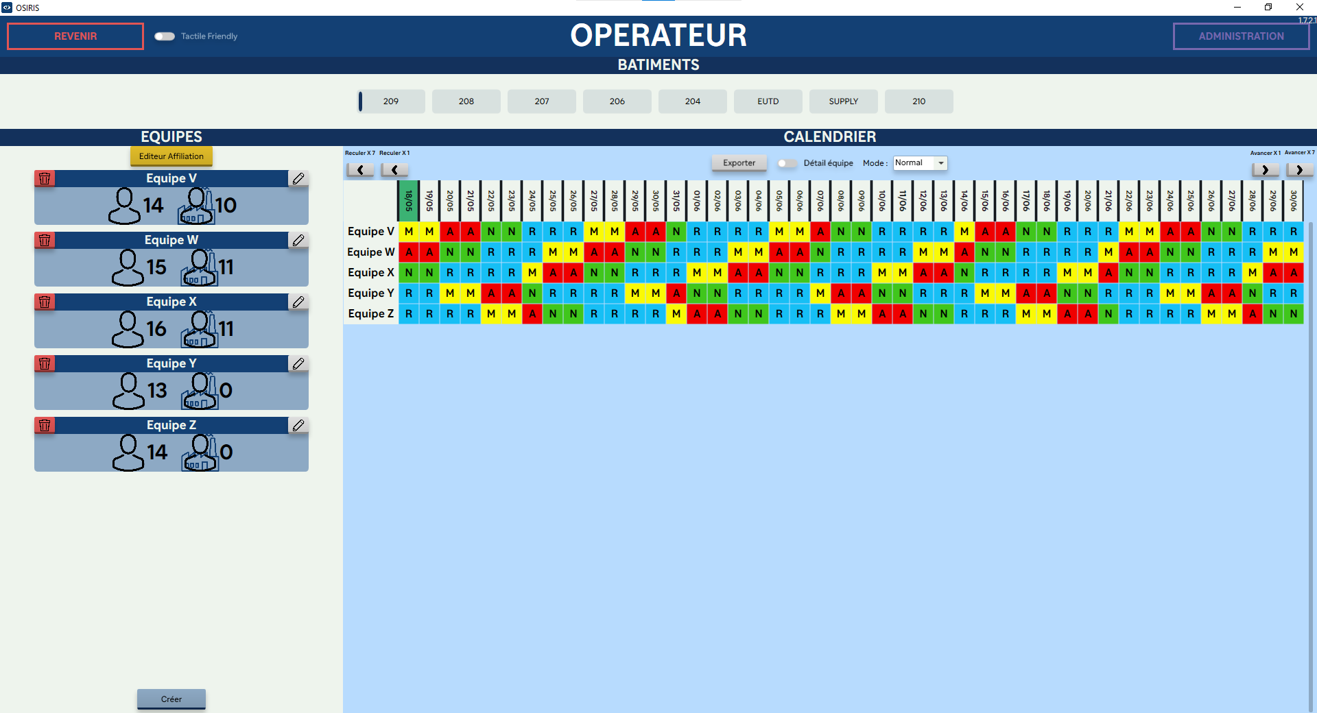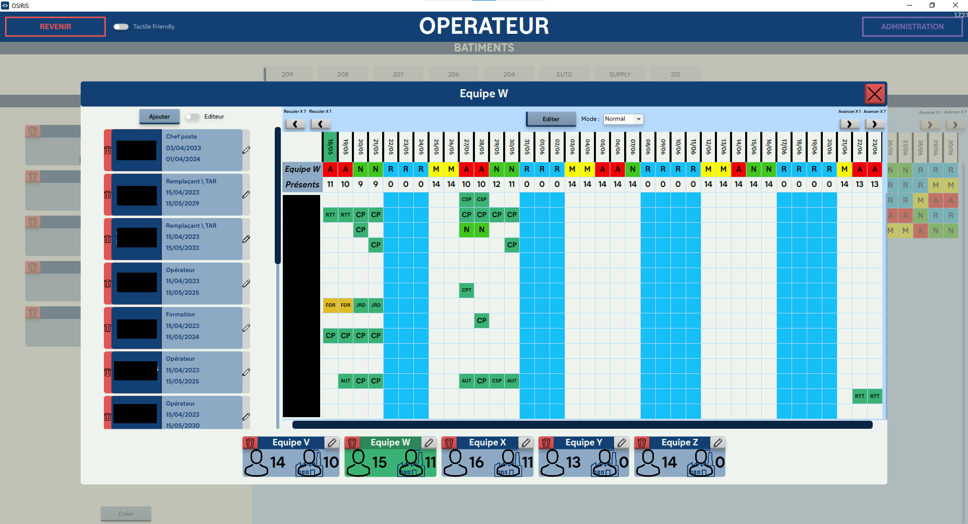 Le logiciel doit vérifier, pour chaque mouvement de planning, les contraintes des machines pour s’adapter à la réalité du terrain + afficher le nombre d’opérateurs nécessaire VS le nombre présent + prédictions des quantités de produits en stock et quand les ravitailler.